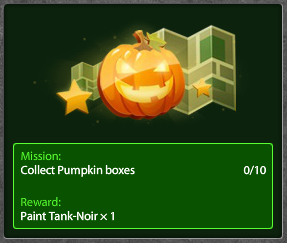 The mission required players to capture 10 pumpkins. The pumpkin was a special variation of the regular gold box, containing three times more crystals than a usual gold box and dropping more rarely.